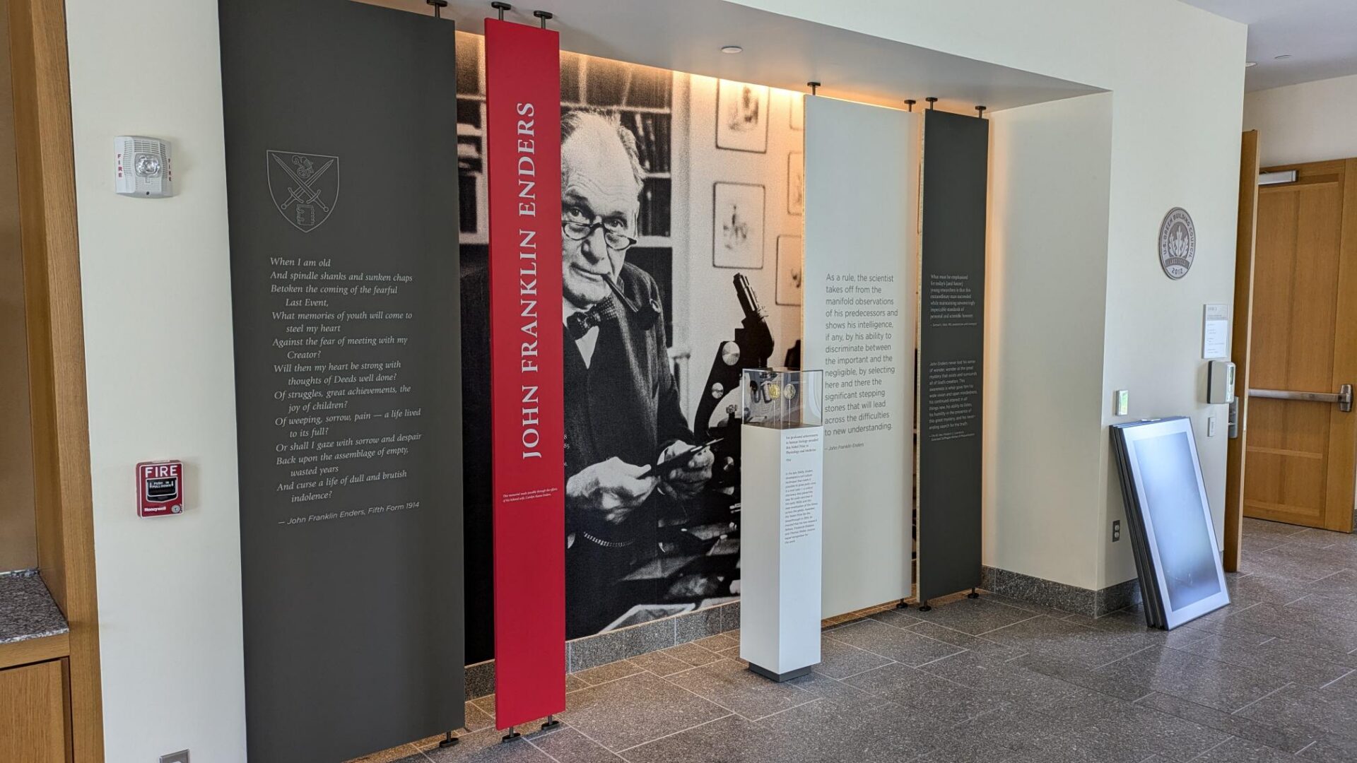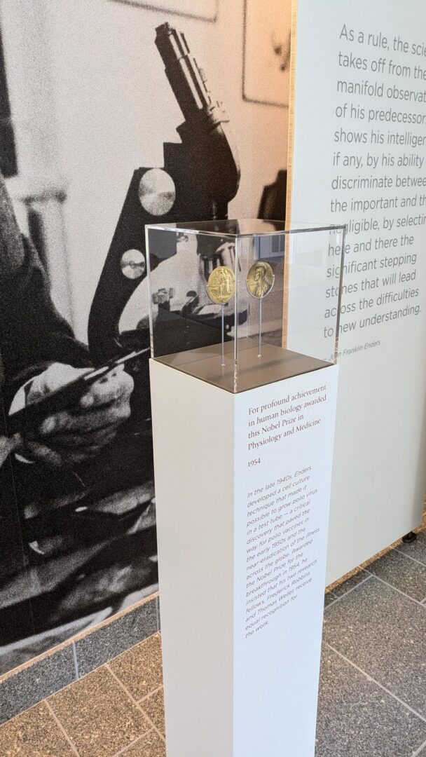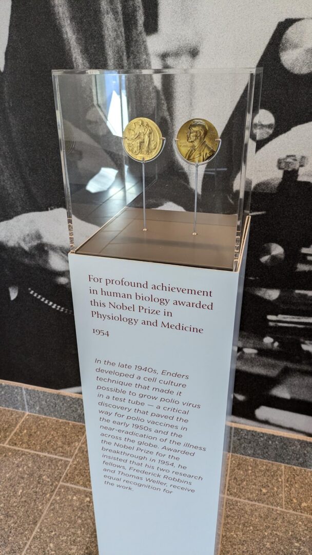 This project centers on the public display of a Nobel Prize honoring the scientific contributions of John Franklin Enders. The installation was designed to present the artifact with appropriate prominence while providing historical context through carefully integrated graphics and interpretive elements.