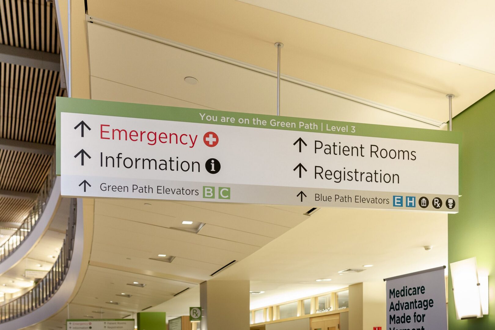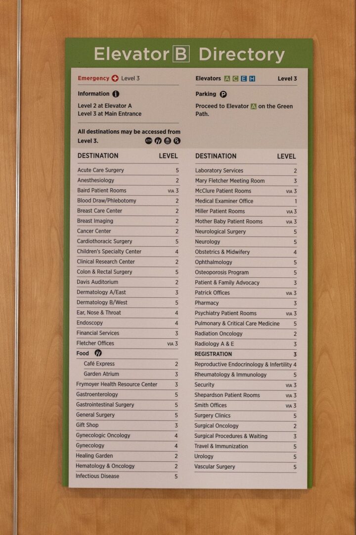 The University of Vermont Medical Center is a large, multi building academic medical campus where clear orientation and consistent communication are essential to daily operations. As the campus evolved, a new wayfinding strategy was developed to improve navigation across buildings, departments, and vertical circulation while maintaining clarity within a highly active healthcare environment.